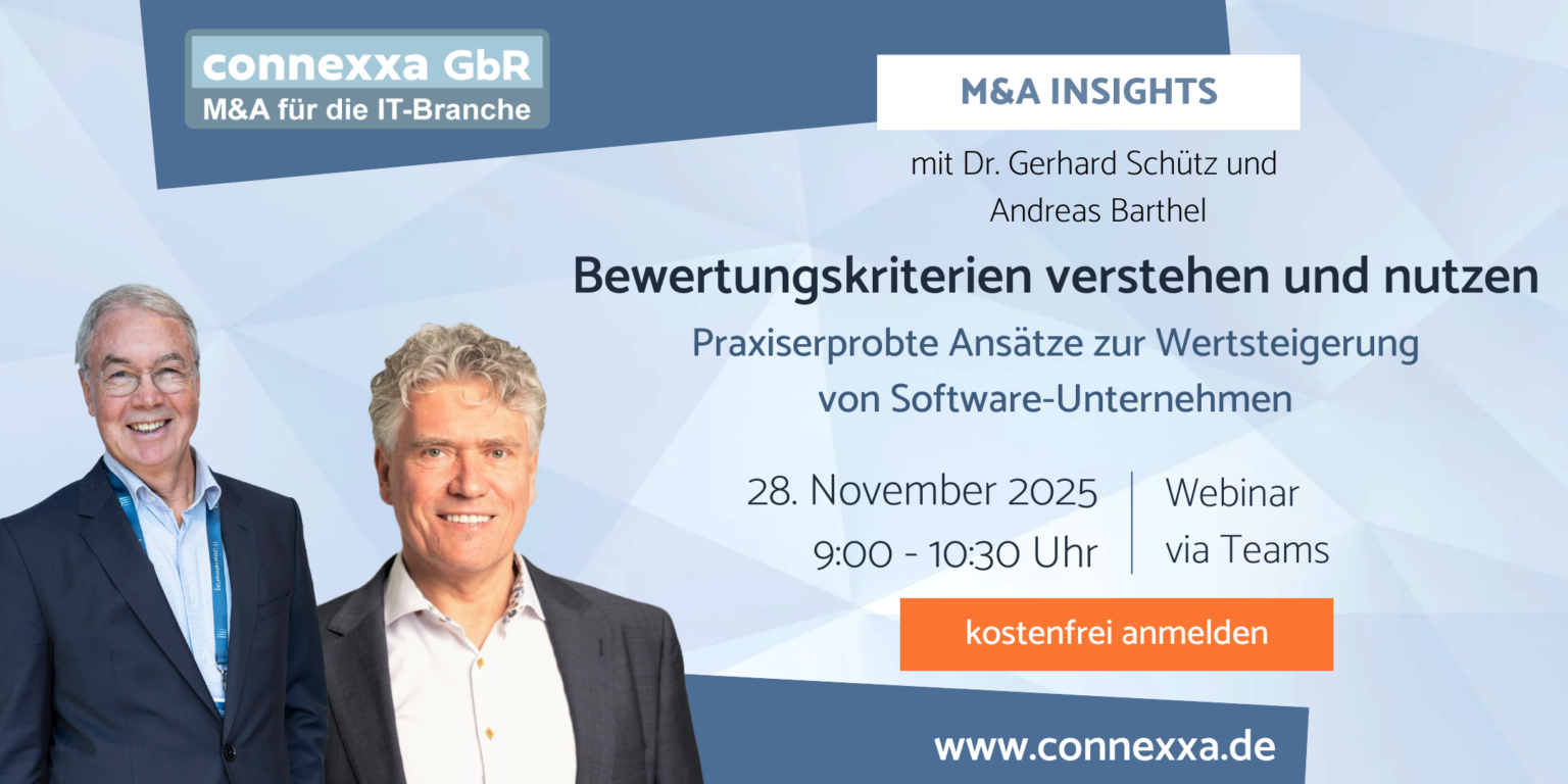In unserem Online Format „M&A Insights“ vertiefen Dr. Gerhard Schütz und Andreas Barthel am Freitag, 28. November von 9:00 Uhr bis 10:30 Uhr zu diesem Hintergrund die folgenden Themen: